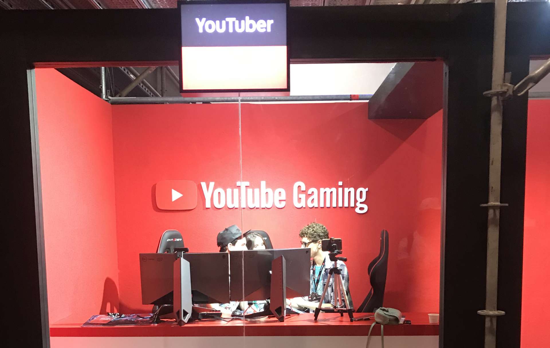 O YouTube Gaming veio com a atração principal do seu estande voltada para o público bem infantil. Além disso, eles montaram o estande com as atrações e o palco voltados para a parede e não para o restante da feira. Estava bem esquisito. Como o Facebook, eles também possuiam cabines para mostrar os streamers ao vivo.